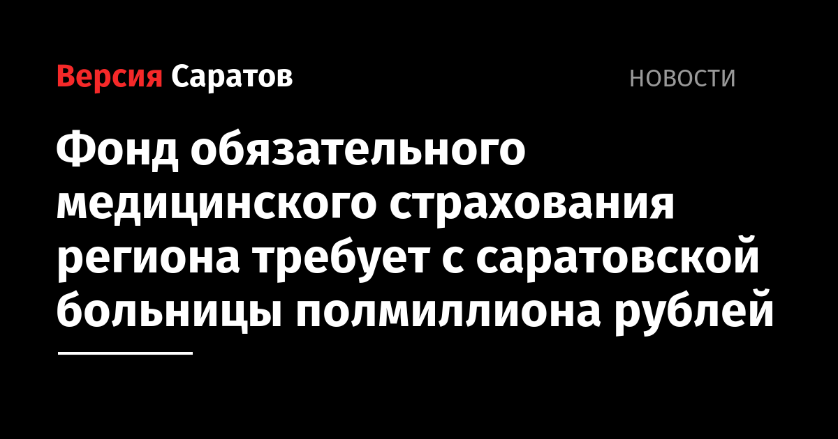 Территориальный фонд обязательного медицинского страхования Саратовской области через суд требует 563 тысячи рублей от городской больницы № 1. Соответствующий иск был подан на этой неделе. Подробности пока не сообщаются.