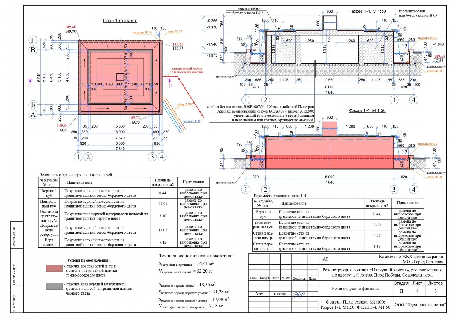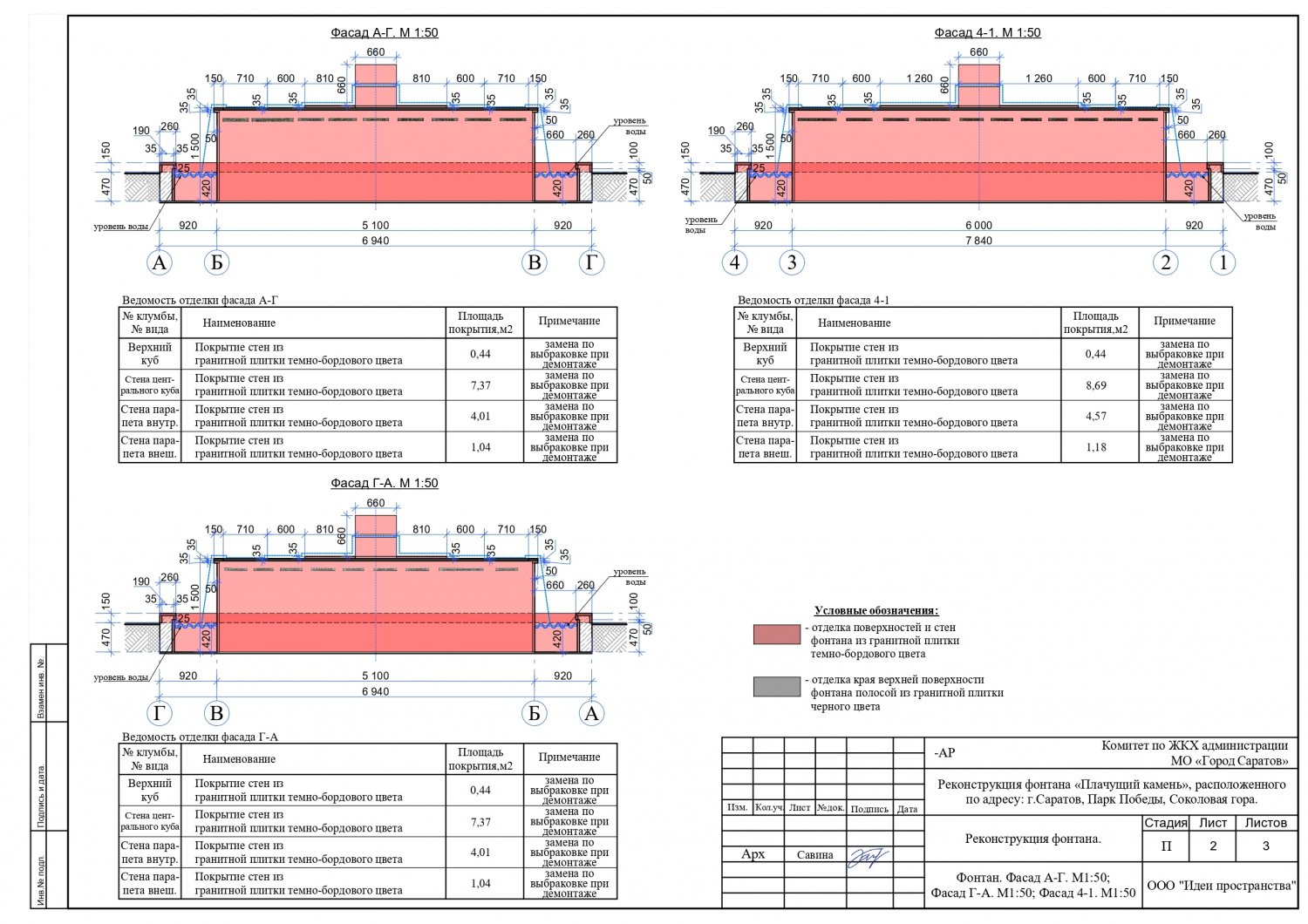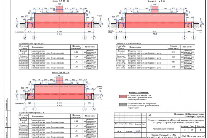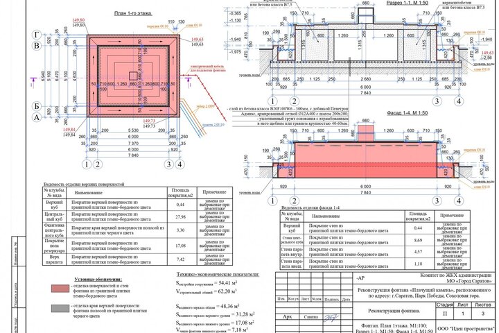 Но, как стало известно из проектной документации, при ремонте фонтана у подножья «Журавлей» вновь будут использованы для облицовки гранитные плиты. Часть из них будут черными, часть — темно-бордового цвета. Никакой смальты использоваться не будет. Проектом реконструкции фонтана «Плачущий камень» также предусматривается строительство вспомогательного сооружения технического назначения для размещения в нем оборудования для функционирования коммуникаций и систем фонтана.