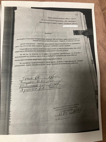 В школу и из школы самостоятельно ребёнок ездить не сможет. Администрация Волжского района угрозами, чуть ли не насильно, заставляет меня подписать соглашение на переселение в Елшанку, в квартиру на 2-й Степной. Это окраина города. Кроме Елшанки больше ничего не желают рассматривать и идти нам навстречу, хотя варианты жилья для переселенцев в нашем районе есть», — написала женщина.
