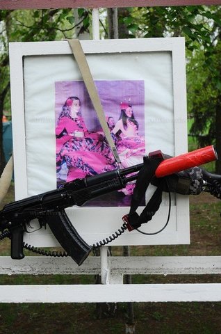 На площадке фестиваля были выставлены военная техника, оружие для игры в лазертаг, работы саратовского художника-карикатуриста Александра Дьякова под общим названием "Командировка в 45-й". Множество мотоциклов были украшены военной символикой и флагами "9 Мая".