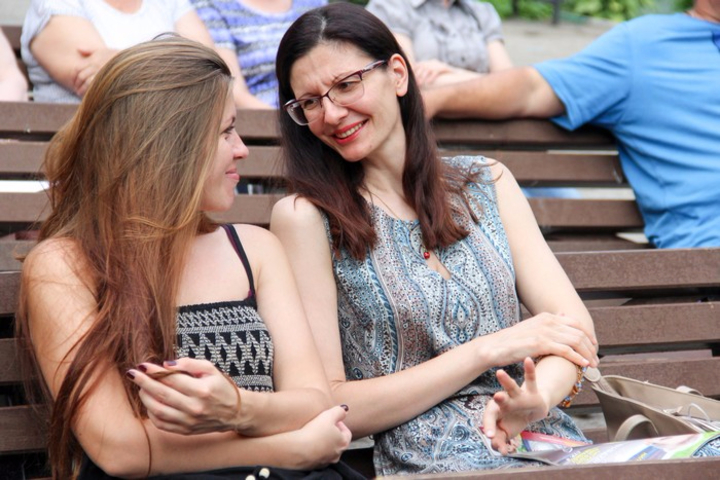 Гости парка заняли все скамейки перед сценой "Ракушка", чтобы послушать поэзию Леонида Иоффе, Елены Пономаревой и Андрея Башкайкина. Многие посетители пришли с детьми, для них работали мастерские мехенди и аквагрима.
