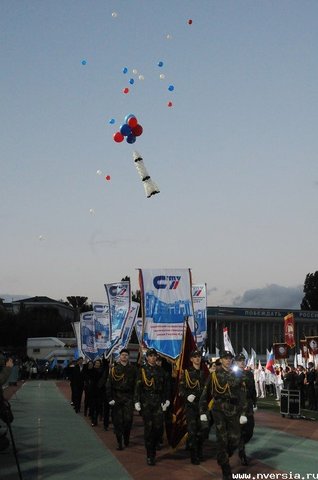 "Именно вам, вчерашним выпускникам школ, посвящается это грандиозное шоу, второго которого нет в России, - обратился с приветственным словом к собравшимся губернатор Валерий Радаев. - Но смотрите не возгордитесь. Это - лишь аванс на будущее, которое вы должны оправдать успешной учебой". Он посоветовал всем "быть готовыми к учебе, труду и обороне".
