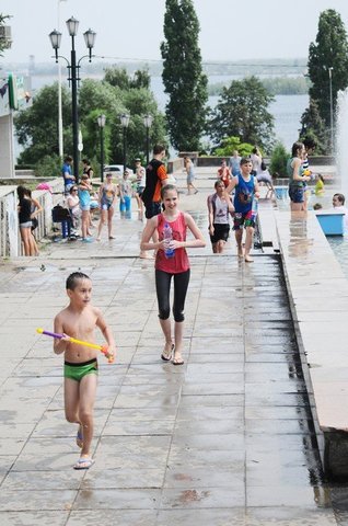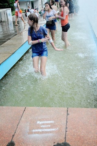 В воскресенье, 21 июня, в Саратове в фонтанах "Каскад" около музея Федина состоялся флешмоб "Водная битва". Более 50 человек разных возрастов поливали друг друга и мимо проходящих горожан прохладной водой, при этом не встречая никакого недовольства. В качестве оружия использовались водные пистолет, бутылки различной емкости и тазы.