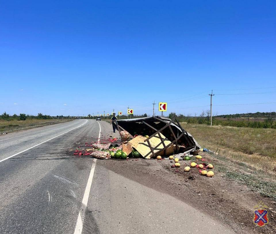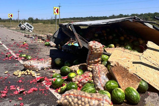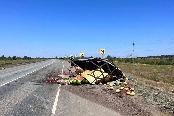 Еще днем 7 июля на 600-м километре трассы Сызрань-Саратов-Волгоград в Волгоградской области произошло ДТП. «ГАЗель», перевозившая арбузы и картофель, съехала на обочину и перевернулась. В результате аварии кузов транспортного средства развалился, а груз был сильно испорчен.