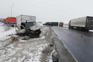 В результате столкновения ГАЗ-172412 врезался в большегруз Mercedes под управлением 46-летнего водителя и автомобилем «Лада Ларгус» с 45-летним водителем. КамАЗ в это время врезался в Isuzu с 37-летним мужчиной за рулем. Водитель автомобиля ГАЗ-172412» был госпитализирован. Водители Isuzu и Mercedes получили травмы, не госпитализированы.