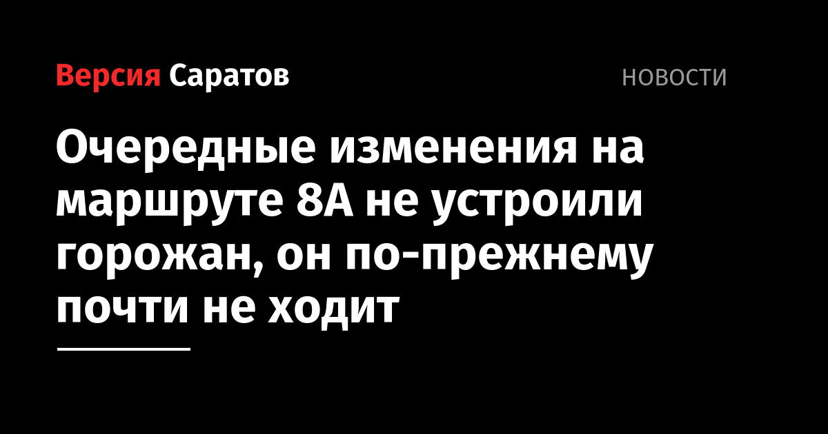 В Саратове практически не функционирует маршрут № 8А (Кузнецова — 2-я Городская больница), работу которого власти неоднократно обещали наладить. О такой проблеме саратовец Сергей рассказал в своем обращении в адрес и. п. главы города Павла Суркова. Сегодня, 16 октября, оно появилось на портале «Лица». Горожанин написал, что после изменения схемы маршрута, пользоваться им стало практически невозможно. Он заявил следующее: