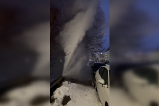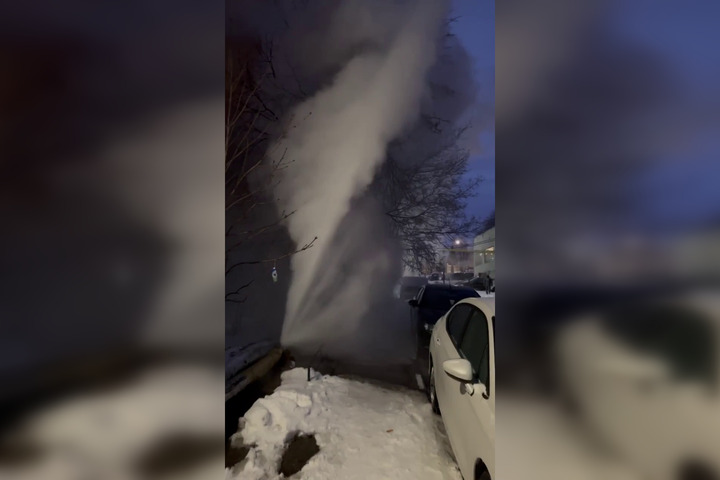 По информации автора публикации, ЧП случилось на Лунной, 5. На записи видно, как горячая вода с силой бьётся вверх и заливает припаркованные машины.