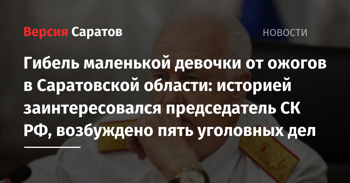 Председатель СК РФ Александр Бастрыкин затребовал доклад по информации о смерти двухлетней девочки в Саратовской области. Об этом сообщили в федеральном Следкоме.