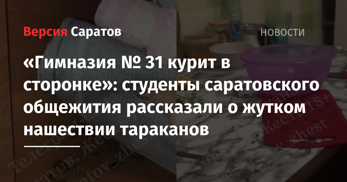 «Тараканы из гимназии № 31 нервно курит в сторонке. Вот условия в общежитии № 5 Саратовского государственного аграрного университета», — сообщил аноним.