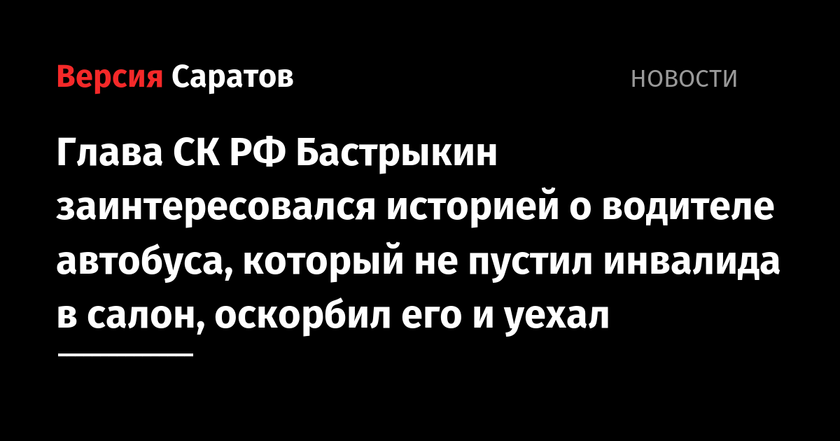 Глава СК России Александр Бастрыкин поручил доложить о результатах проверки информации о нарушении прав инвалида в Саратове. Об этом сообщается в Telegram-канале «Информационный центр СК России».