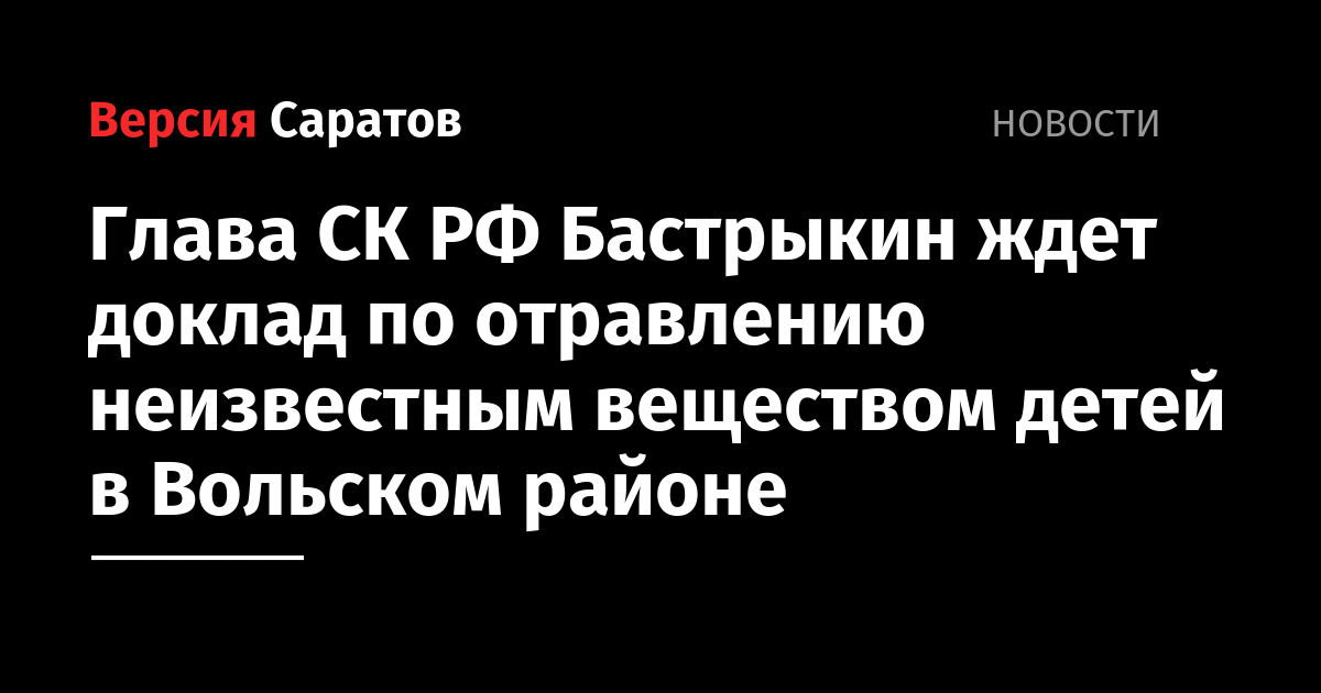 Глава СК РФ Александр Бастрыкин запросил доклад о ходе проверки по факту отравления детей в Саратовской области. Об этом сообщили в пресс-службе федерального ведомства.