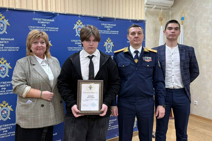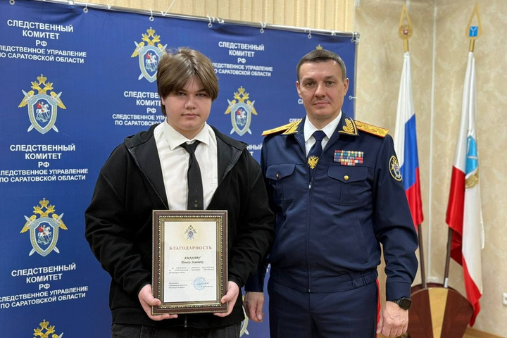 Глава СУ СК по Саратовской области передал 17-летнему юноше благодарность от Бастрыкина