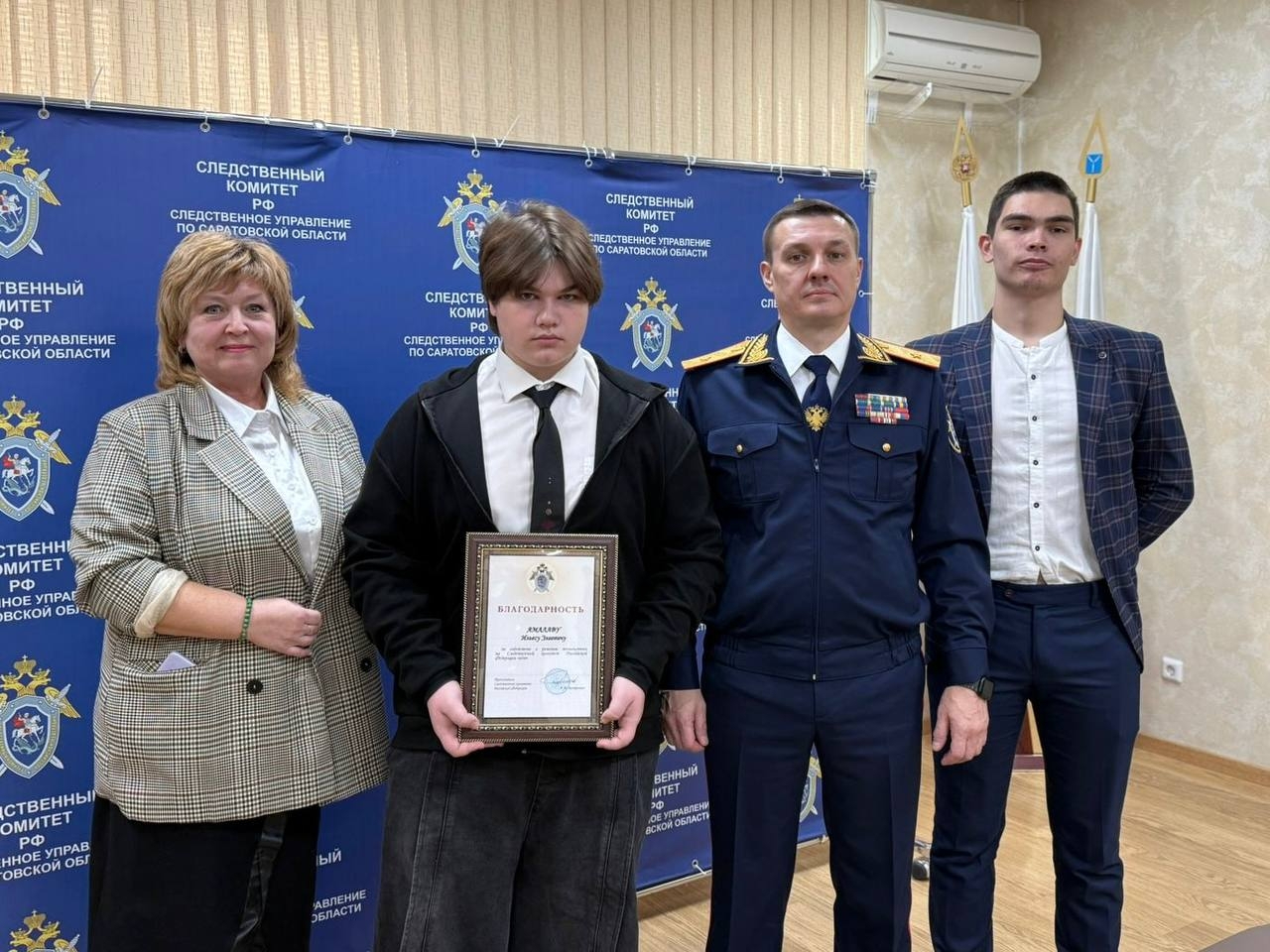 Глава СУ СК по Саратовской области передал 17-летнему юноше благодарность от Бастрыкина