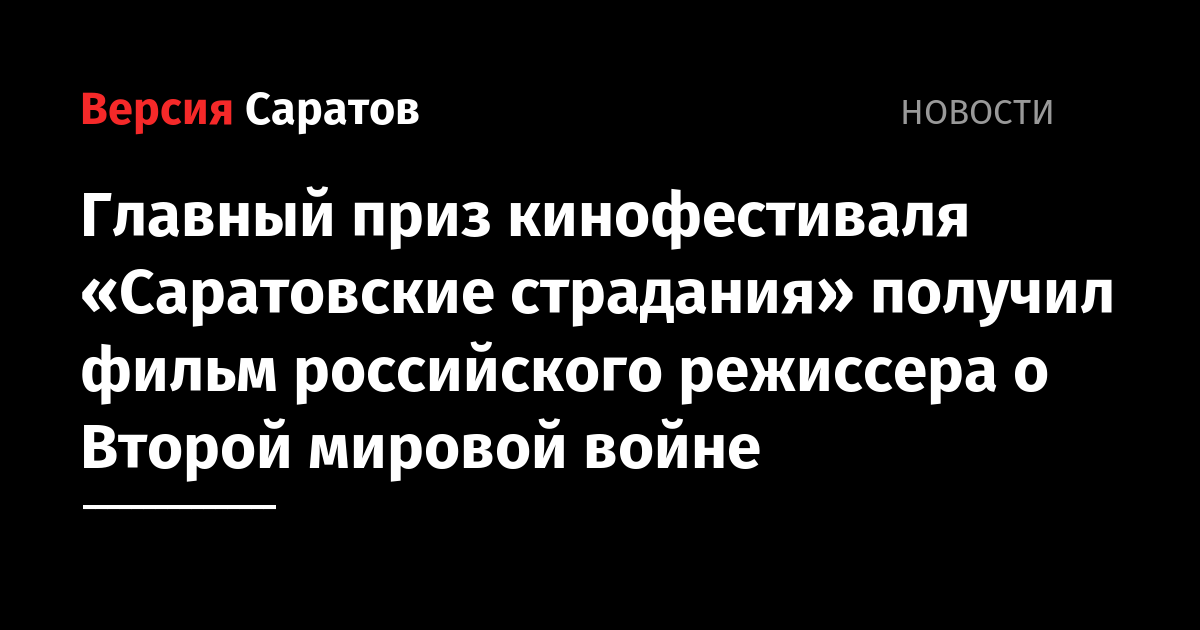 Главный приз кинофестиваля «Саратовские страдания» получил фильм российского режиссера о Второй мировой войне