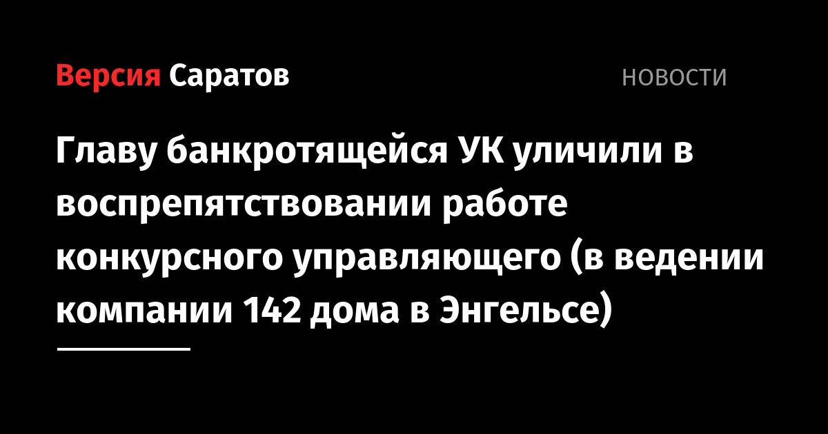 Главу банкротящейся УК уличили в воспрепятствовании работе конкурсного управляющего (в ведении компании 142 дома в Энгельсе)