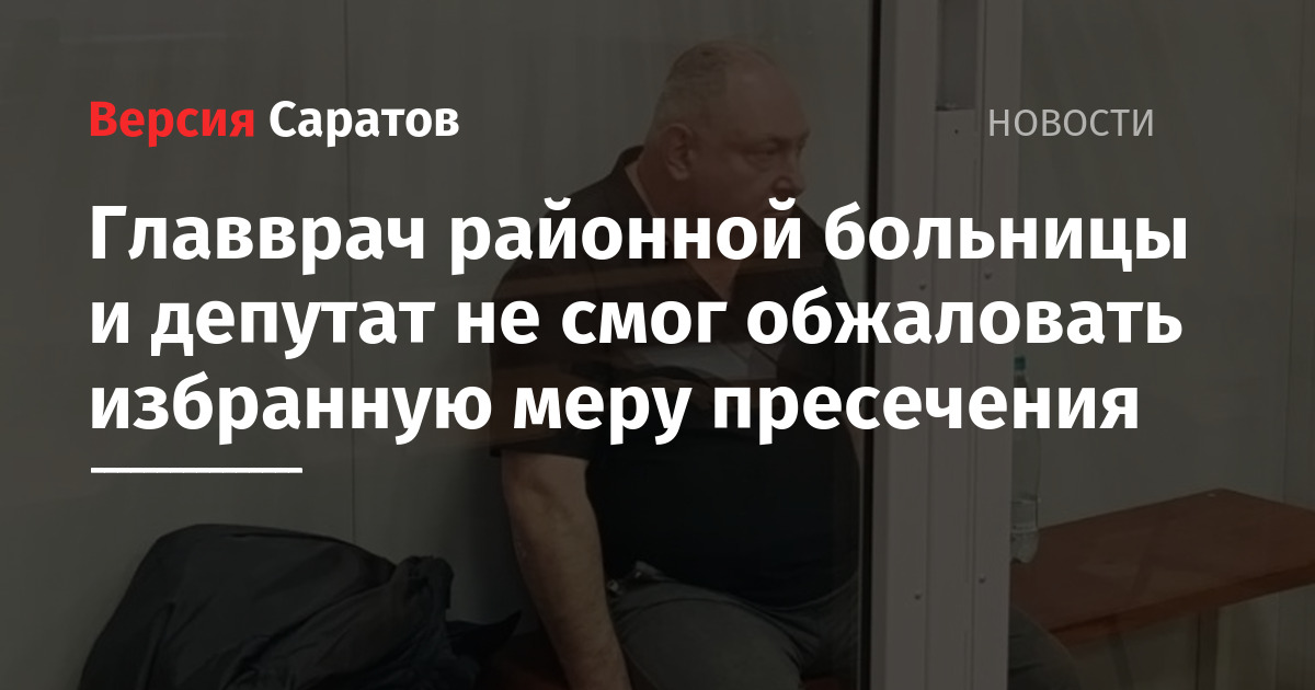 Сегодня, 16 апреля, в Саратовском областном суде рассмотрели апелляционную жалобу на избранную меру пресечения главврачу Калининской районной больницы Михаилу Татарскому. Об этом ИА «Версия-Саратов» рассказали в пресс-службе инстанции.