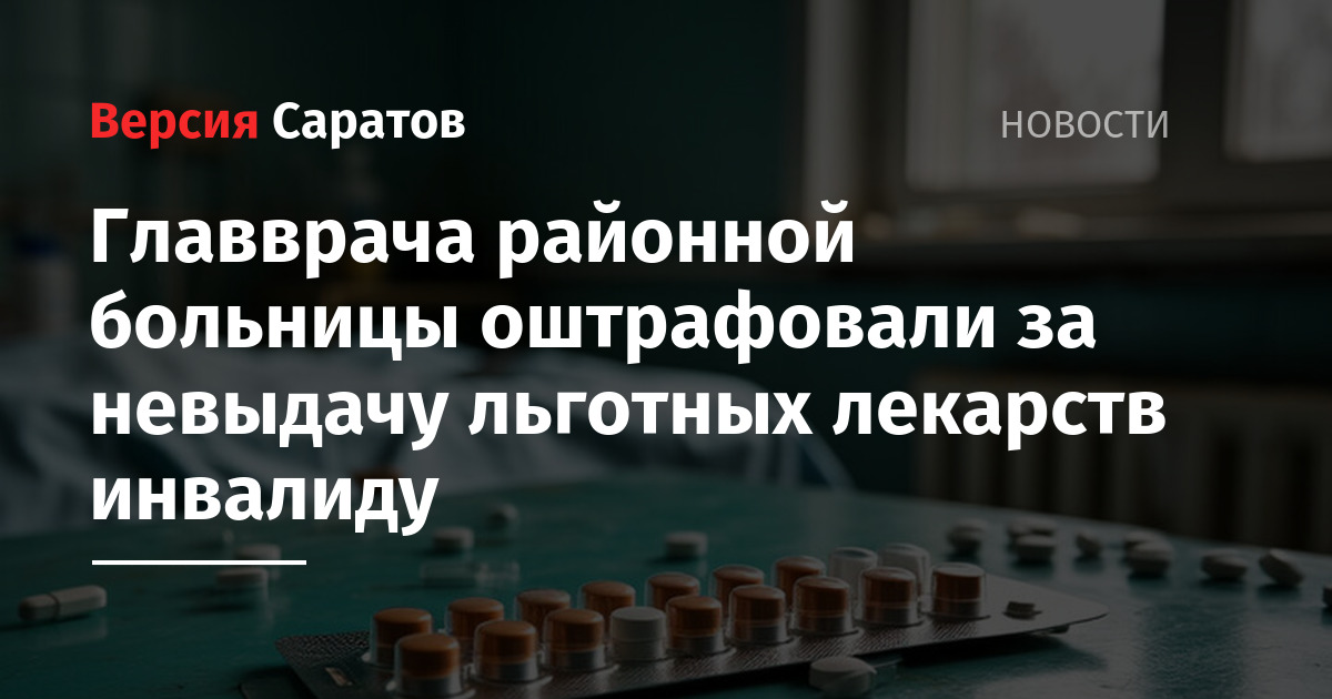В Саратовской области главврача районной больницы оштрафовали за невыписку льготных рецептов. Об этом сообщили в региональной прокуратуре.
