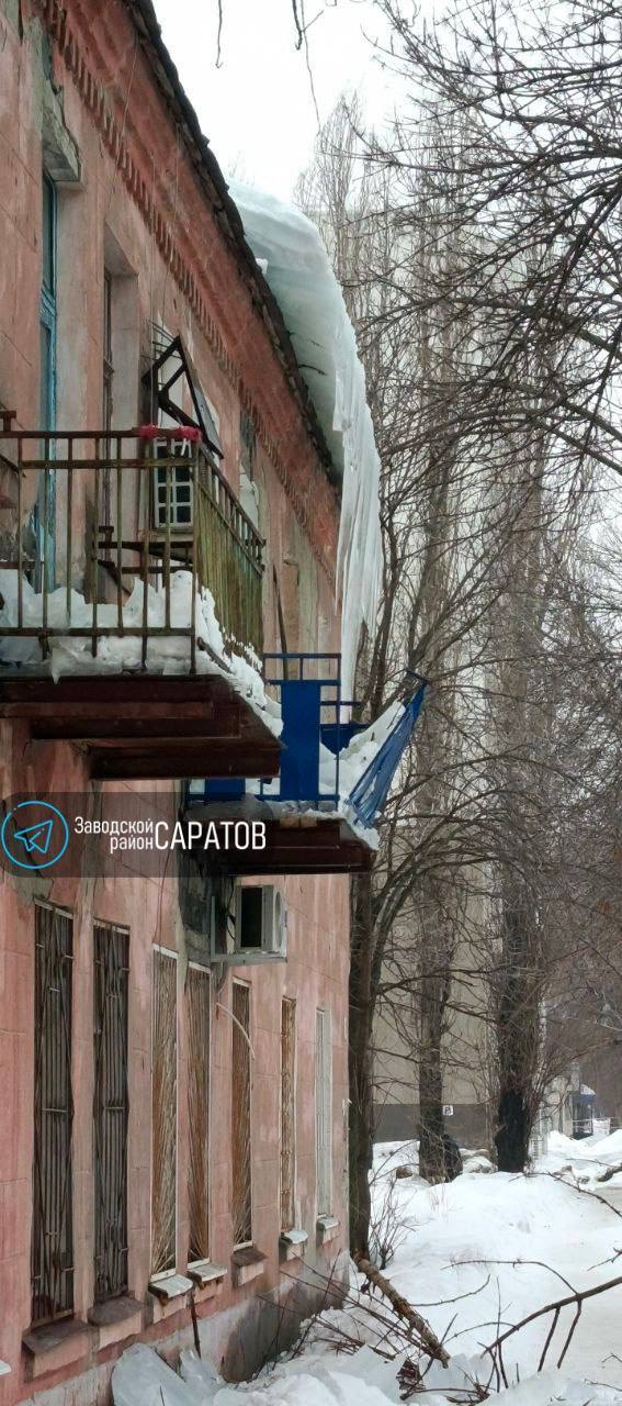 В Заводском районе (глава Вячеслав Доронин) Саратова упавшая с крыши глыба льда выбила окно в доме. Об этом очевидец рассказал в Telegram-канале «Саратов Заводской район».