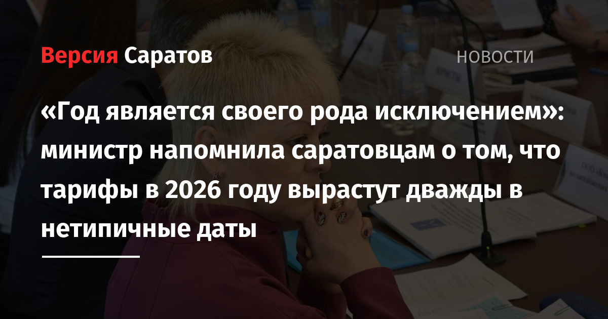 Тарифы для жителей Саратовской области в 2026 году вырастут дважды, год будет нетипичным, рассказала на комитете областной думы по вопросам жилищной, строительной и коммунальной политики министр — председатель комитета по тарифам Лариса Новикова.