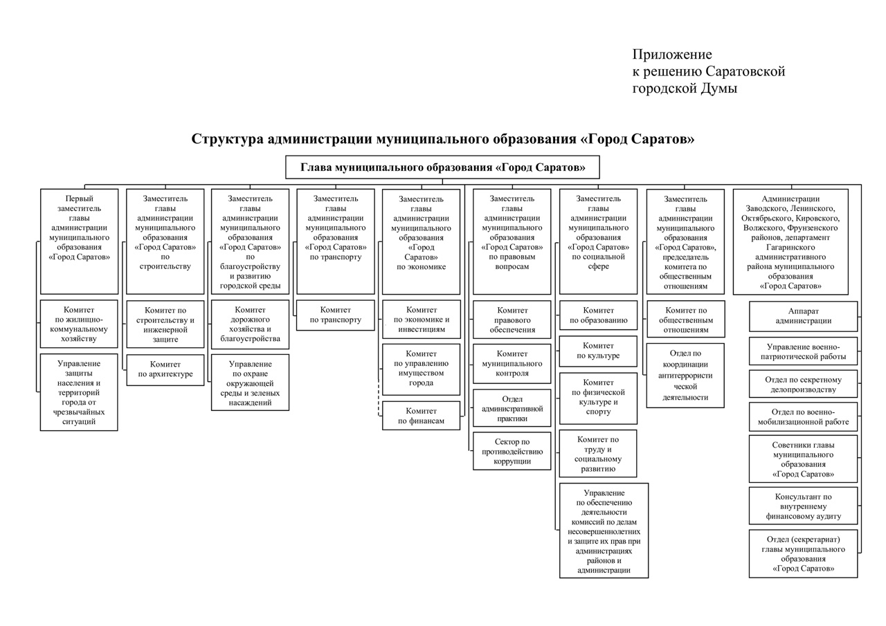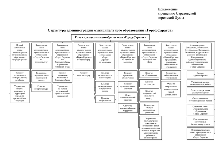 Затем руководитель аппарата мэрии Екатерина Максимова предложила внести изменения в структуру администрации Саратова. Число заместителей Михаила Исаева решили увеличить до 8 человек. В структуру предложено ввести должность заместителя главы администрации МО «Город Саратов» — председателя комитета по общественным отношениям. В настоящее время комитет находится в подчинении замглавы по социальной сфере.