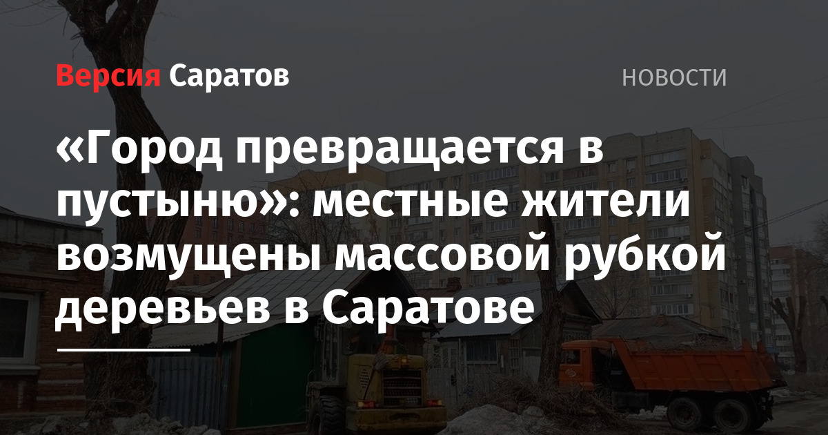 Жители Саратова возмущены массовой рубкой деревьев в городе. Своё недовольство саратовцы высказывают в Telegram-чатах администраций, мэрии, губернатора Романа Бусаргина, спикера Госдумы Вячеслава Володина.