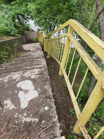 Тротуаров вдоль дороги также не предусмотрено, поэтому у жителей посёлка есть два варианта на выбор: идти по разрушенным ступеням или по проезжей части под мост», — написала горожанка, прикрепив фотографии.