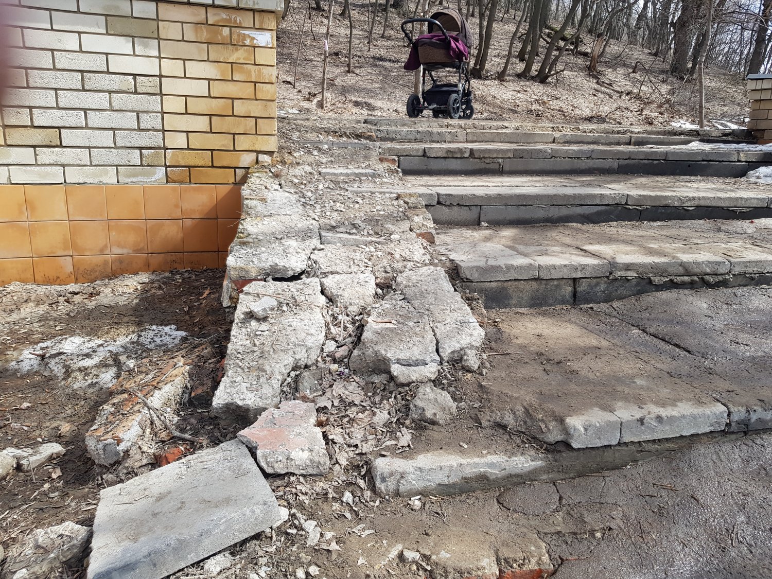 В редакцию ИА «Версия-Саратов» обратилась жительница улицы Шелковичная, которая пожаловалась на ужасное состояние лестницы, ведущей к санаторию «Октябрьское ущелье». По словам женщины, пандус, по которому теоретически могли бы спускать и поднимать детские коляски, полностью разрушен. «Молодым мамам приходится едва ли не на себе перетаскивать коляску по ступенькам. Это не только тяжело, но еще и опасно, потому что сама лестница тоже в плохом состоянии», — поделилась она.