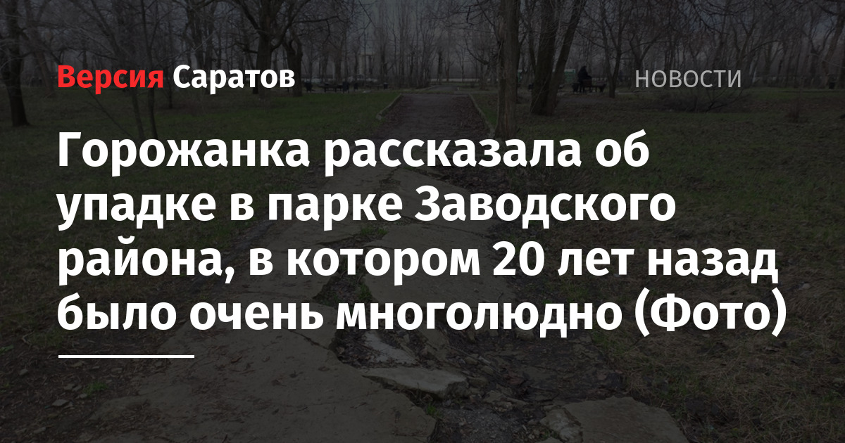 «Около 20 лет назад был хороший парк, там всегда было много народу. Сейчас он в полном упадке. Никто там ничего не убирает даже. Соответственно, там никто и не гуляет. Хотя рядом строят новые дома по проспекту Энтузиастов. Можно было бы благоустроить место для отдыха», — рассказала саратовчанка.