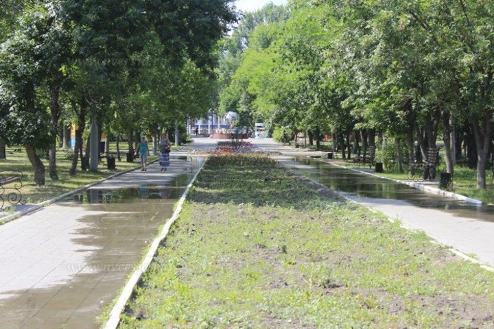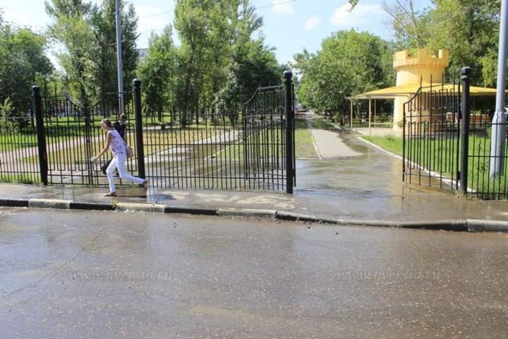 В Заводском районе в сквере Дружбы народов из-под земли забил коммунальный фонтан. Вода вытекает из нескольких мест сильным напором. На данный момент затопило половину парка, а также часть дороги.
