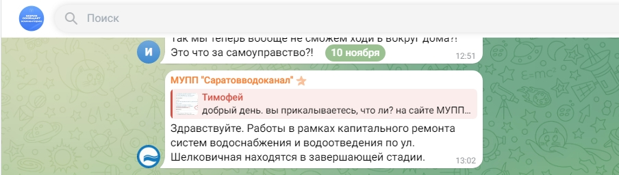 Реконструкция канализационного коллектора проводится по заказу МУПП «Саратовводоканал». Подрядчиком выступает ООО «Инженерные Системы». Работы стартовали 15 апреля 2025 года. Изначально их планировали завершить до 30 октября, однако к этому сроку коммунальщики не успели. 10 ноября представители «Саратовводоканала» сообщили нашему читателю в чате городской администрации, что работы «находятся на завершающей стадии».