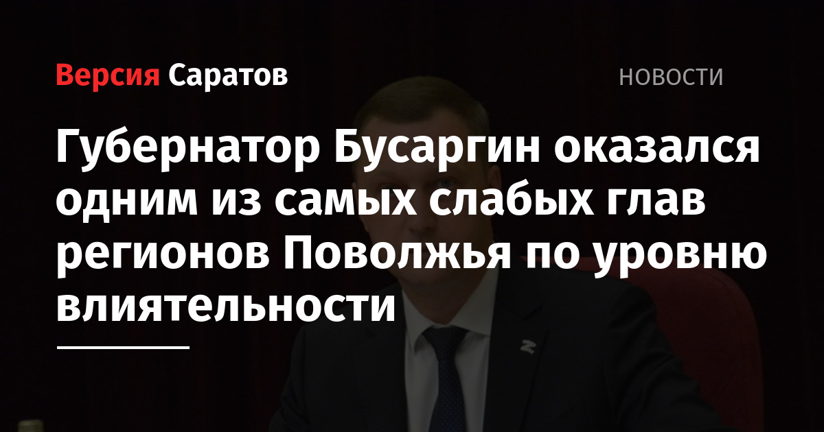 Губернатор Бусаргин оказался одним из самых слабых глав регионов Поволжья по уровню влиятельности