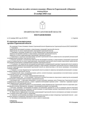 В правительстве Саратовской области упразднены два министерства. Соответствующее постановление сегодня подписал губернатор Роман Бусаргин.