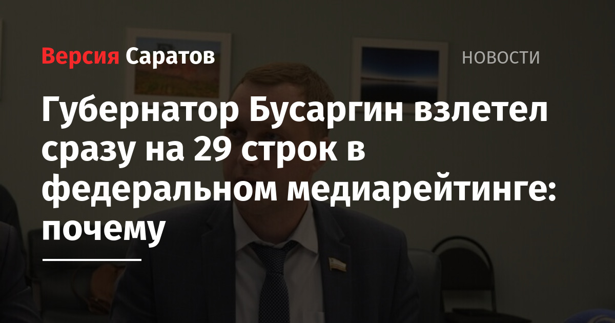 Сообщается, что Бусаргин поднялся в федеральном рейтинге сразу на 29 позиций и теперь занимает 18-е место из 89-и возможных. Среди руководителей субъектов Приволжского федерального округа он расположился на 5-1 строке из 14-и (+4 места).