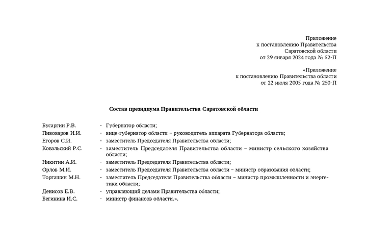 Губернатор Роман Бусаргин изменил состав президиума правительства Саратовской области. Соответствующее постановление глава региона подписал вчера, 29 января.
