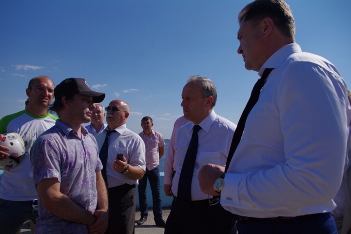 Алексей Прокопенко обратил внимание главы региона на благоустройство набережной, сравнив верхние ярусы, которые принадлежат администрации и нижний, который находится в частной собственности. "Посмотрите, как на нашей части красиво — зеленый газон, деревья, которые поливаются, и что творится здесь — желтая, выгоревшая трава, какие-то пыльные павильоны, тиры и тому подобное. Все это надо убирать, - подчеркнул Прокопенко. - Работа в этом направлении уже началась — мы уже убрали незаконные ларьки и бассейн. На этом месте будет разбит цветник".