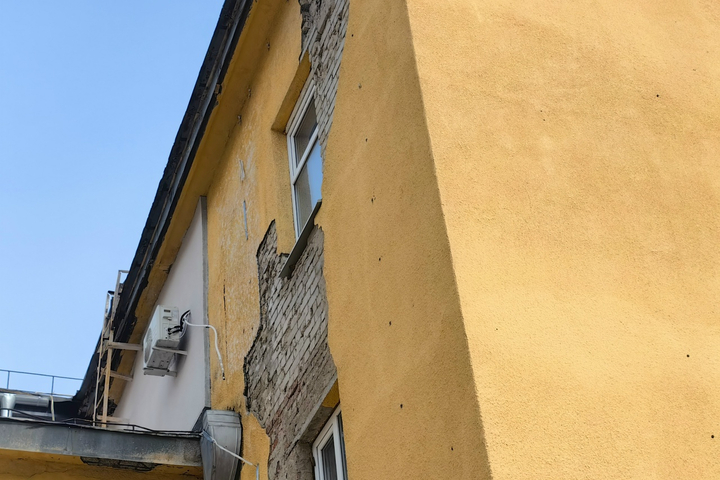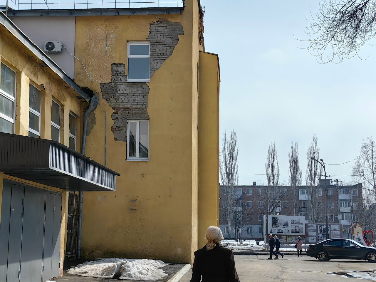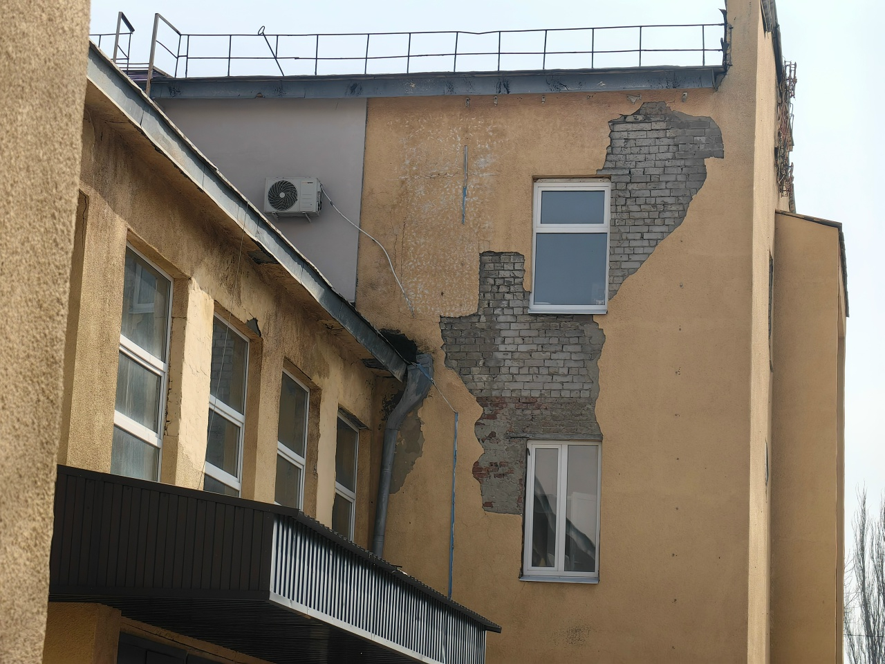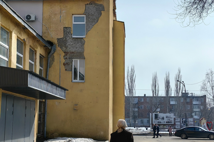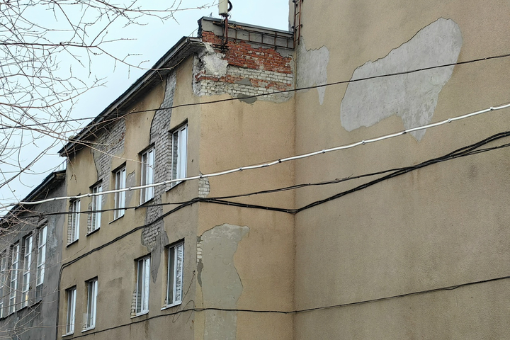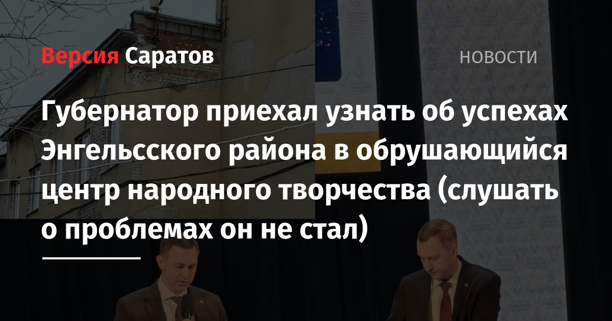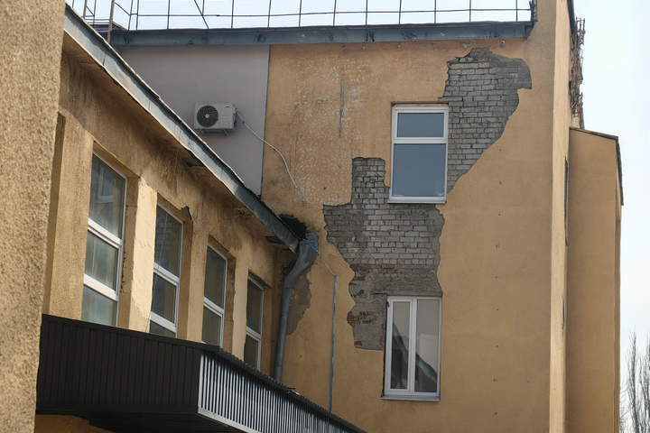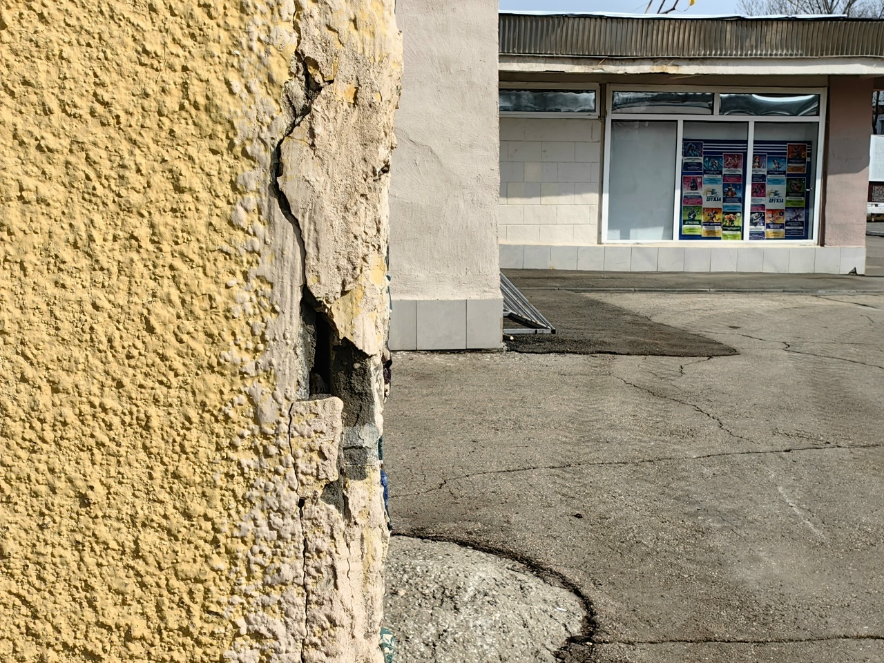 Интересно, что само здание центра народного творчества, в котором выступал глава региона, представляет собой печальное зрелище. Его стены снаружи и внутри имеют серьёзные повреждения. Также как и потолок в актовом зале.