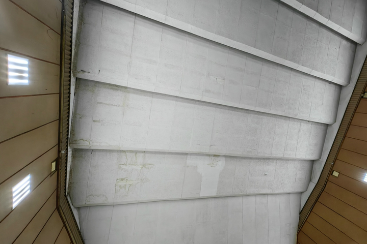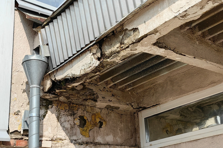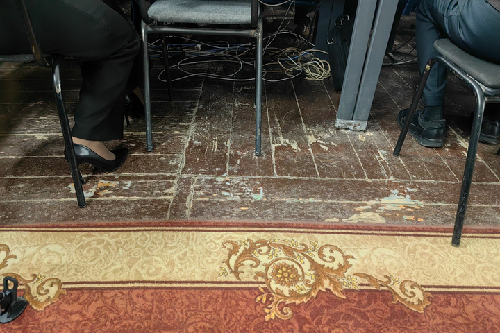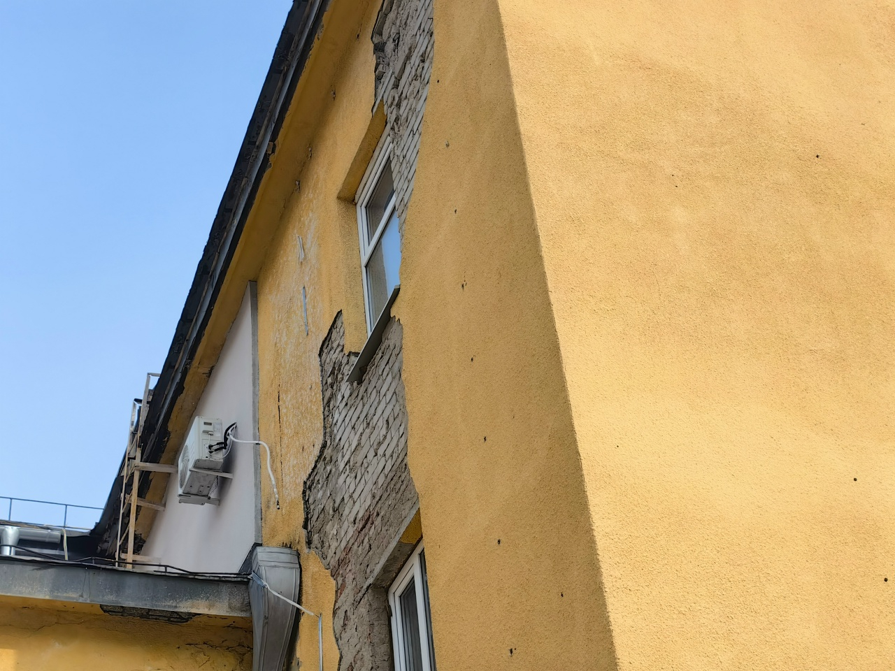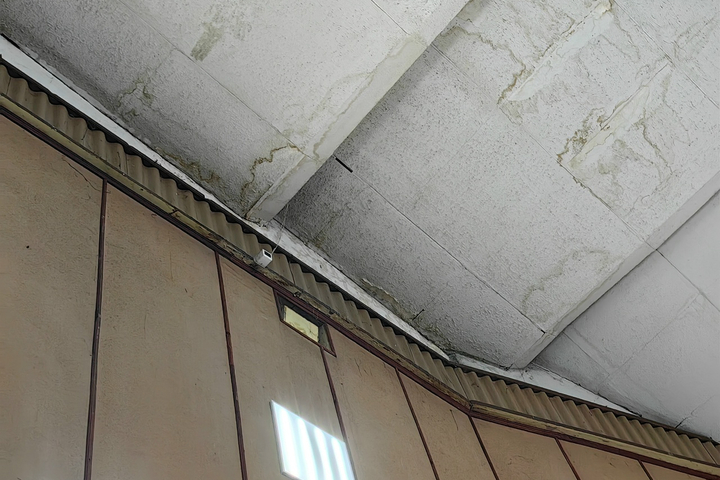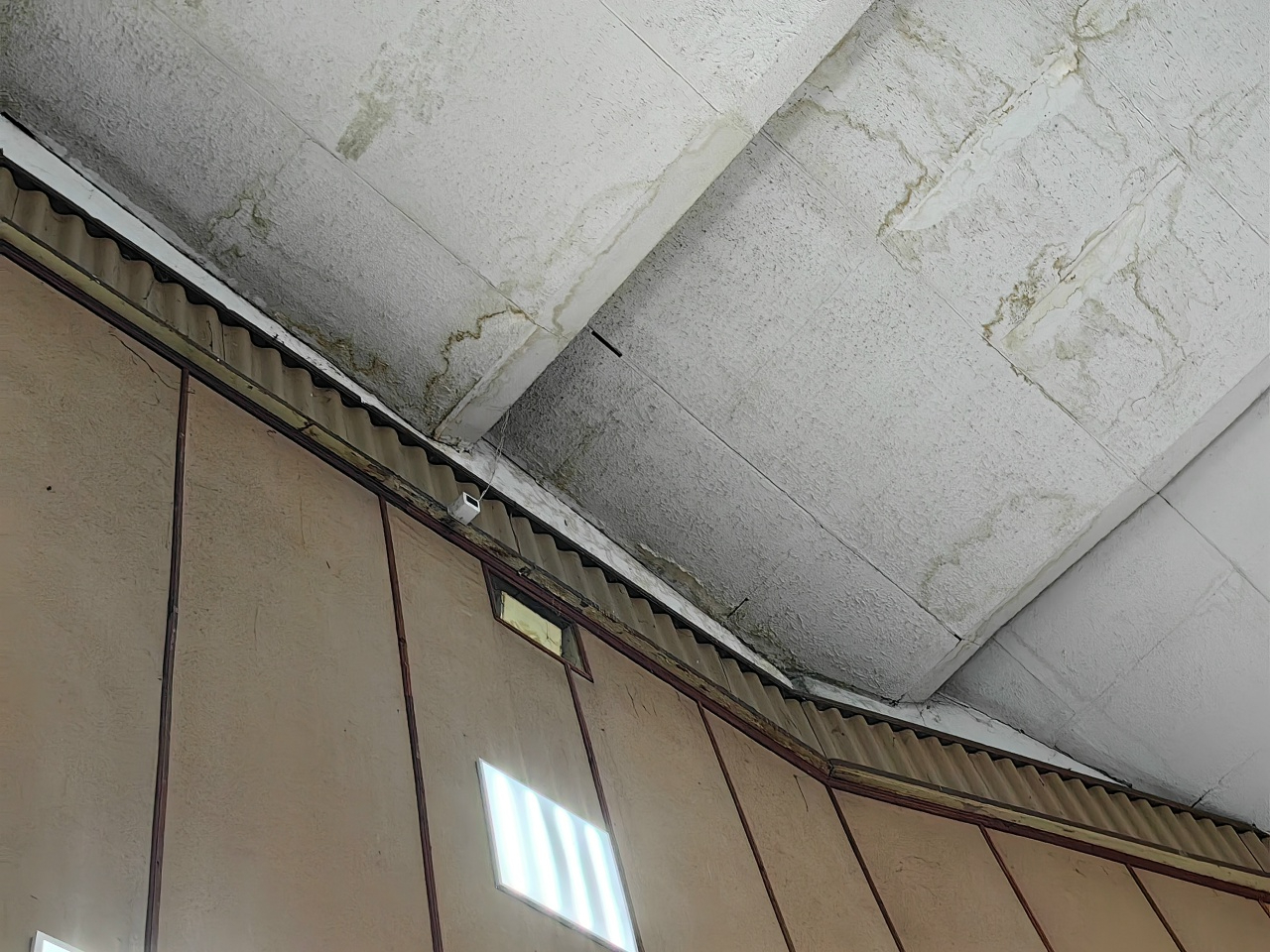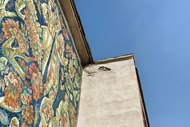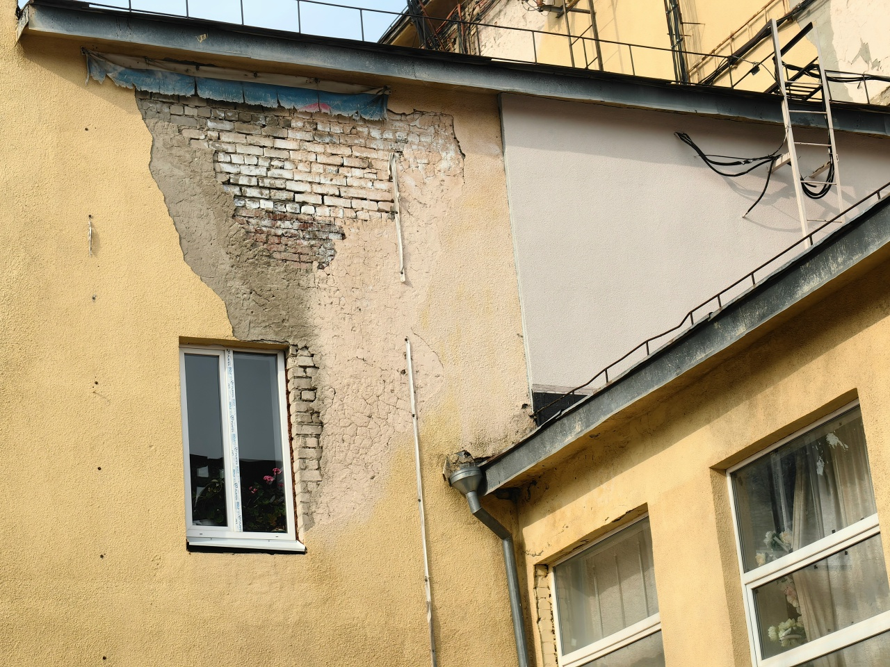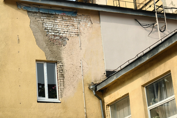 Интересно, что само здание центра народного творчества, в котором выступал глава региона, представляет собой печальное зрелище. Его стены снаружи и внутри имеют серьёзные повреждения. Также как и потолок в актовом зале.