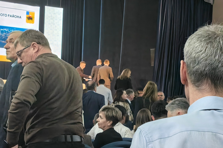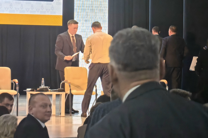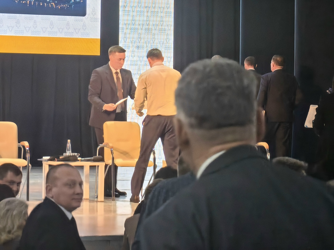 Однако президиум внезапно «свернул» мероприятие — когда завершилась стадия выступления представителей власти с заготовленными речами, было объявлено, что «на все поступившие вопросы ответы будут даны позже». После этого губернатор встал со своего места на сцене и ретировался.