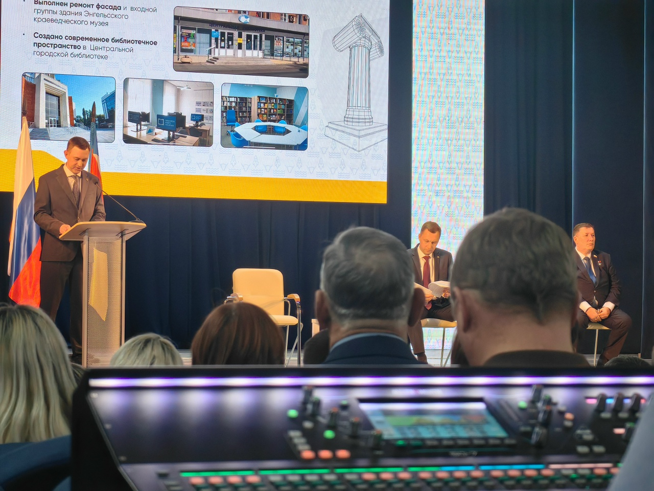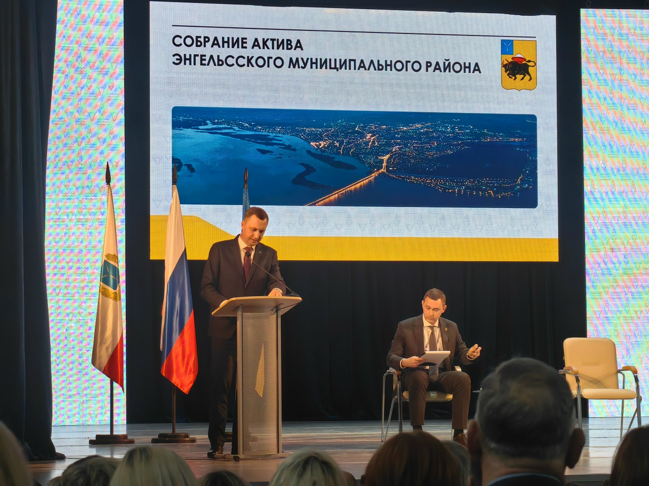 Сегодня в здании МБУ Центр народного творчества «Дружба» в Энгельсе прошло собрание актива района. На мероприятии присутствовал губернатор Саратовской области Роман Бусаргин. Ведущим был глава Энгельсского района Максим Леонов, а приглашённым в президиум гостем — депутат Саратовской областной думы Александр Янклович.