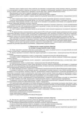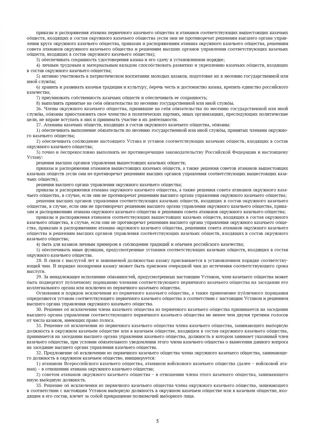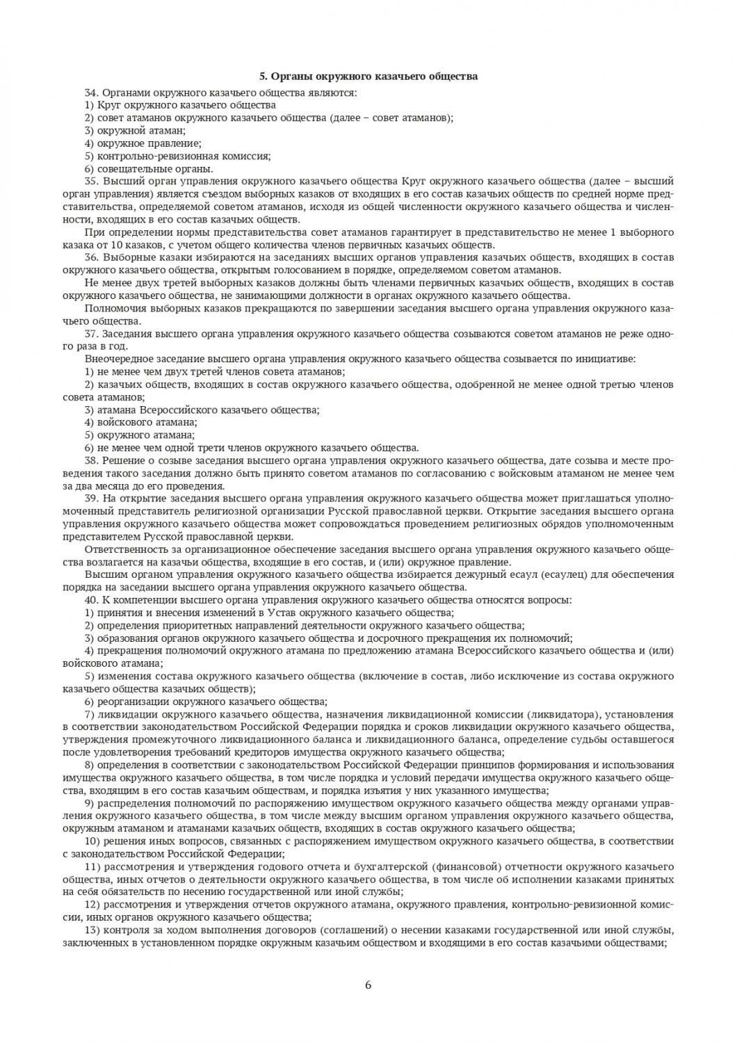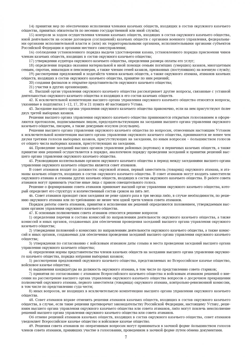 «Деятельность окружного казачьего общества осуществляется на основе принципов добровольности, равноправия, самоуправления, законности, гласности, уважения прав и свобод человека и гражданина, сохранения и развития традиций российского казачества, а также подконтрольности и подотчетности в соответствии с законодательством Российской Федерации», — говорится в документе.