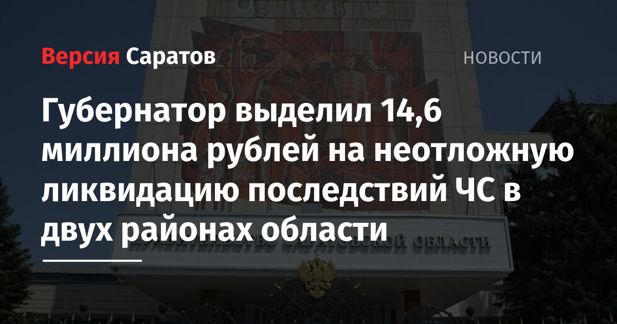 Губернатор Саратовской области Роман Бусаргин подписал постановление о выделении средств из резервного фонда правительства региона. Более 14,6 миллиона рублей пойдут на «выполнение неотложных аварийно-восстановительных работ, связанных с предупреждением и ликвидацией чрезвычайных ситуаций природного и техногенного характера».