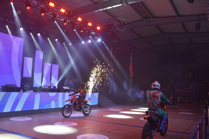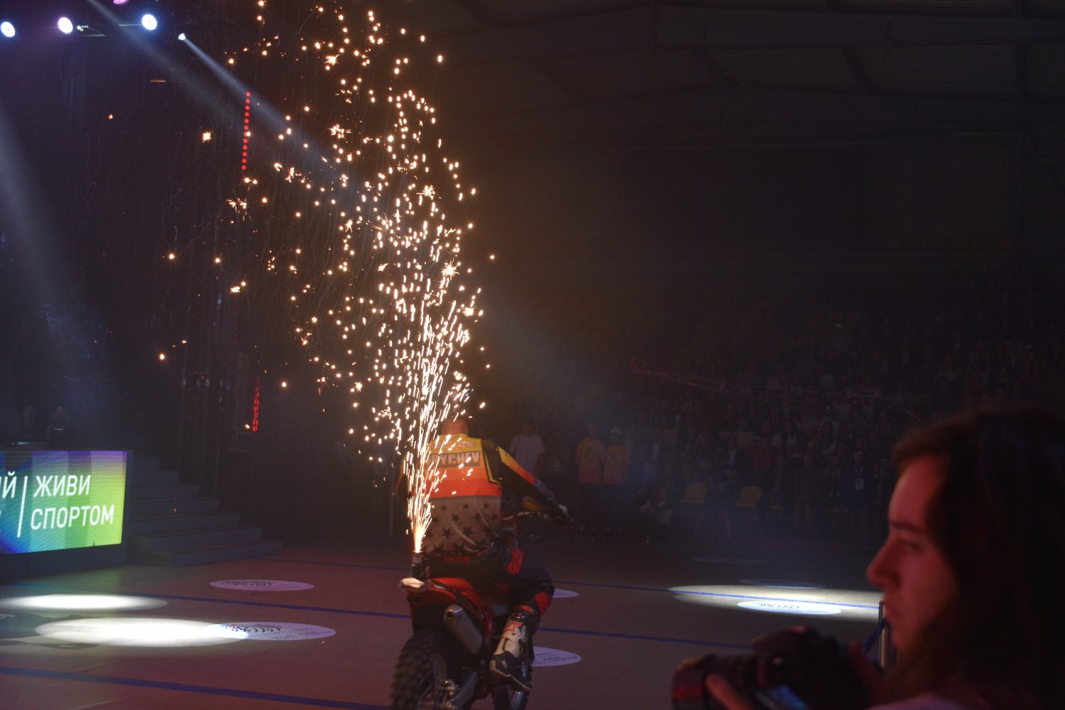 Церемония началась в 19:00 в ФОК «Звездный» без опозданий. Напомним, в прошлом году гости игр вынуждены были прождать начала шоу полтора часа. На входе у всех посетителей спрашивали возраст, так как гостям до 17 лет вход на мероприятие был запрещен. В регионе действуют ограничения на массовые мероприятия для детей в связи с угрозой распространения энтеровирусной инфекции.