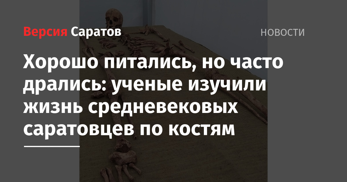 Ученые пришли к выводу, что средневековые жители Саратова хорошо питались. Такие сведения дало довольно хорошее состояние зубов, а зубной камень говорит о большом количестве белковой пищи. Вместе с тем, в древнем поселении было распространено насилие. Об этом свидетельствует большой процент людей с выбитыми зубами, сломанными костями носа, ребрами и проломленными черепами.