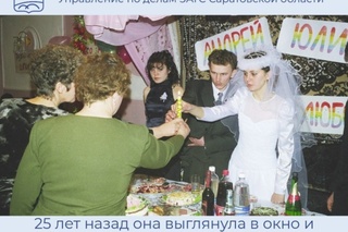 «В 1998 году школьница увидела из окна своего дома молодого человека и решилась подойти познакомиться. Так началась история любви, которая привела Юлию и Андрея Садовых сначала в загс, а спустя годы — во Дворец бракосочетаний Саратова, где они отметили 25-летие совместной жизни.