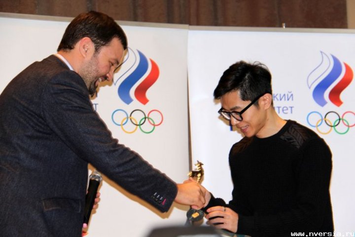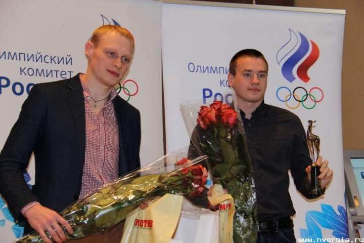 В Большом зале Олимпийского комитета России состоялось награждение лучших спортсменов 2014 года по итогам голосования спортивных журналистов. В число отмеченных статуэткой "Серебряная лань" вошел олимпийский чемпион по прыжкам в воду Илья Захаров. На церемонию вручения призов он пришел вместе с другом и напарником по синхронным прыжкам Евгением Кузнецовым из Ставрополя. В прошлом году они стали победителями чемпионата Европы на трамплине. "Серебряную лань" лауреаты получили из рук президента Союза спортивных журналистов Николая Долгополова.