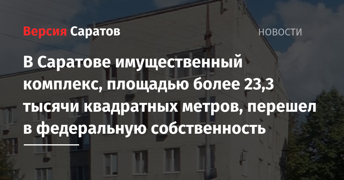 Имущественный комплекс военного госпиталя, расположенный в Саратове, на Рахова, 89, принят в федеральную собственность. Об этом сообщает Росимущество.
