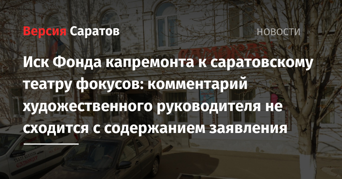 Иск Фонда капремонта к саратовскому театру фокусов: комментарий художественного руководителя не сходится с содержанием заявления