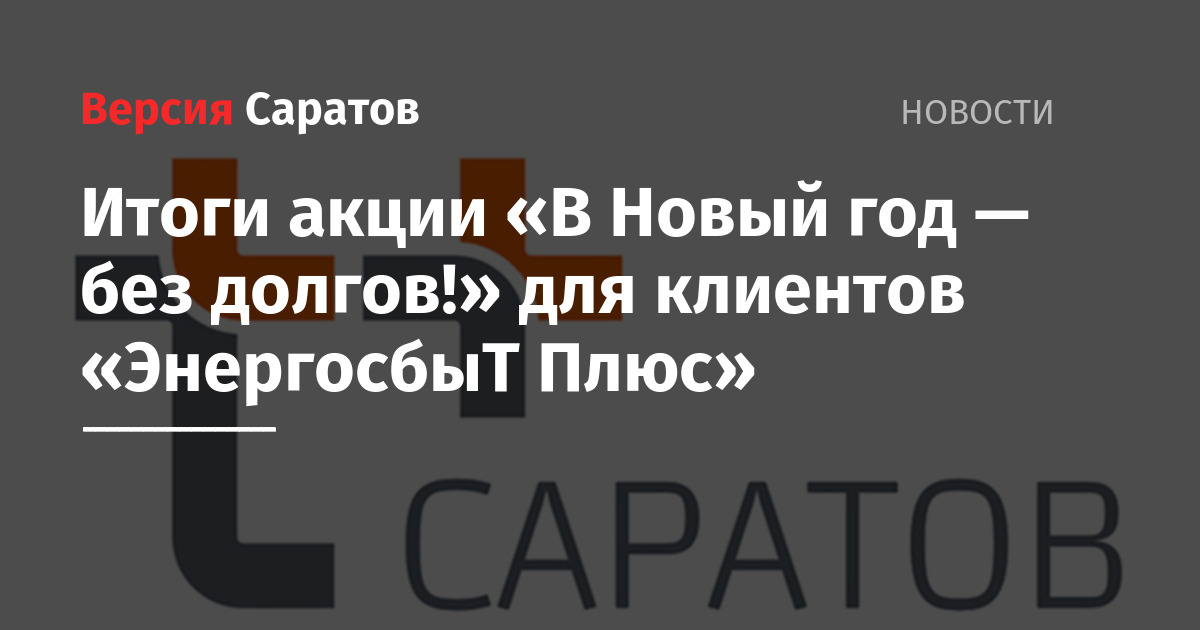Саратовский филиал «ЭнергосбыТ Плюс» подвёл итоги традиционной акции для клиентов — физических лиц «В Новый год — без долгов!». Победителями стали 60 жителей Саратова, Энгельса и Балакова.
