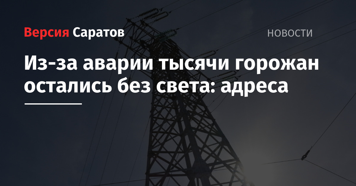 Сегодня, 1 февраля, в Саратове из-за аварии тысячи горожан остались без света. Об этом сообщили в диспетчерской АО НЭСК.