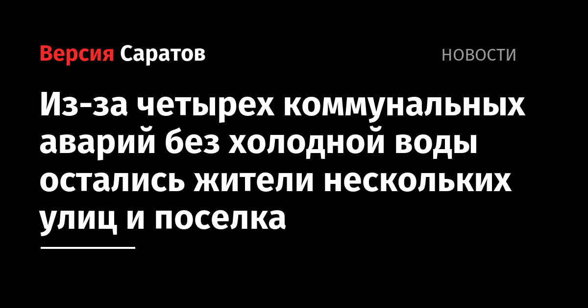 Из-за четырех коммунальных аварий жители ряда улиц в разных районах Саратова остались без холодной воды. Об этом сообщают в ООО «КВС».
